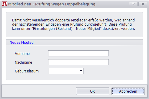 Hinterlegen Sie den Vor- und Nachname, sowie das Geburtsdatum. Anschließend öffnet sich die Mitgliederkarteikarte.