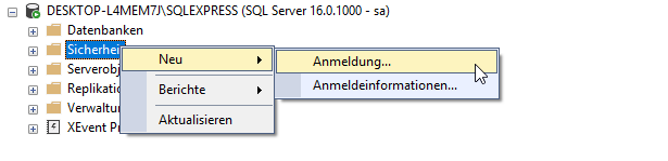 Aus Sicherheitsgründen sollten Sie anschließend einen neuen Benutzer mit der Serverrolle sysadmin anlegen und den sa-Account deaktivieren.