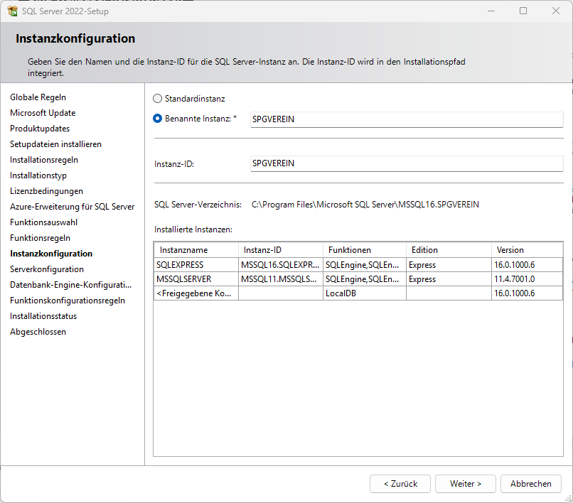 Für SPG-Verein kann ausschließlich ein Microsoft SQL Server verwendet werden. Wir empfehlen die Version 2022, die kostenfreie „Express“-Variante ist für SPG-Verein ebenfalls geeignet.