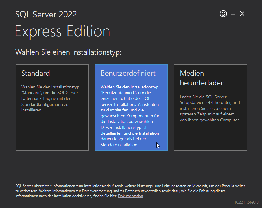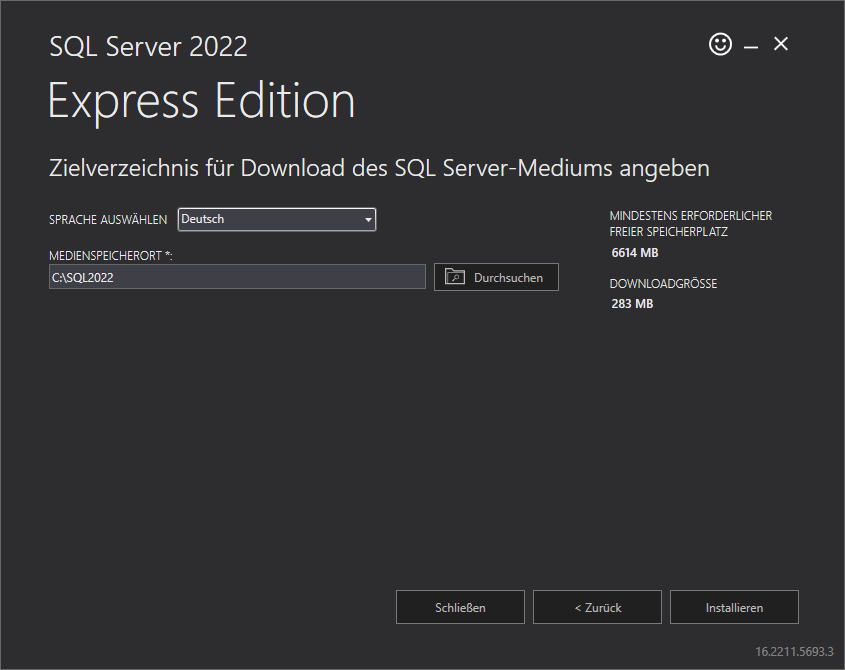 Microsoft-SQL-Server 2022 Express kann beispielsweise unter folgendem Link heruntergeladen werden:
