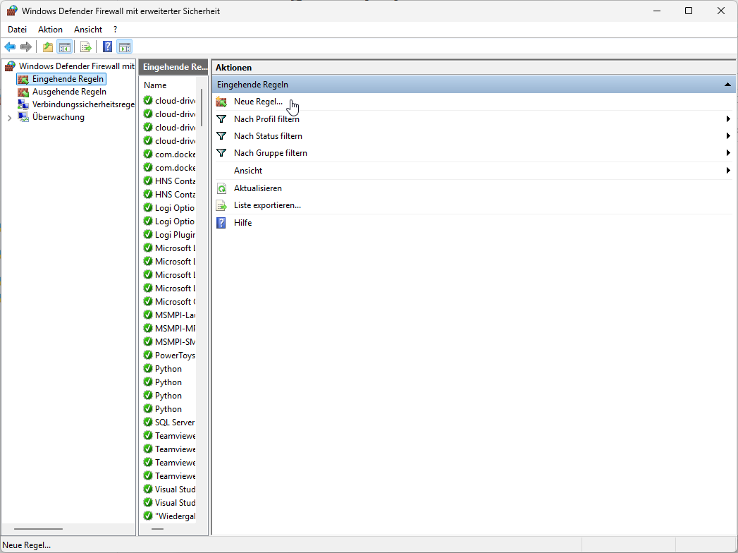 Auf dem Server sind aus Sicherheitsgründen in der Regel fast alle Ports gesperrt. Damit SPG-Verein von außen auf den SQL-Server zugreifen kann, müssen in der Windows-Firewall zwei eingehende Regeln angelegt werden.
