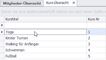Wählen Sie aus der Kursübersicht per Doppelklick den Kurs aus, den Sie abrechnen möchten: