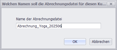 Vergeben Sie einen eindeutigen Namen für die Abrechnungsdatei und klicken Sie auf OK: