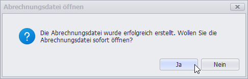 Im Anschluss wird die Abrechnungsdatei erstellt. Sofern Sie die Datei öffnen möchten, bestätigen Sie die Eingabe mit Ja: