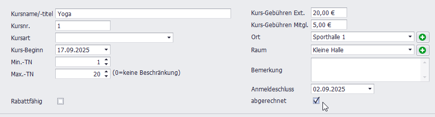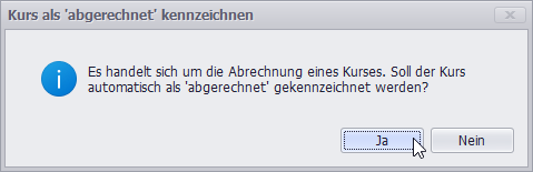 Nach Abschluss des Abrechnungslaufs haben Sie die Möglichkeit, den jeweiligen Kurs innerhalb der Kursdaten als abgerechnet zu kennzeichnen: