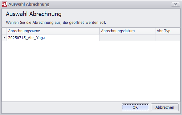 Öffnet die detaillierte Abrechnungsübersicht für den gewählten Kurs.