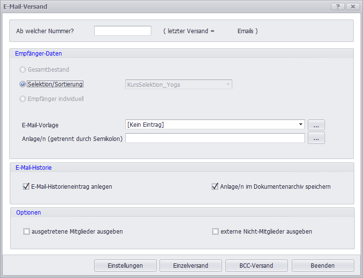 Detaillierte Informationen hierzu finden Sie unter E-Mail Versand