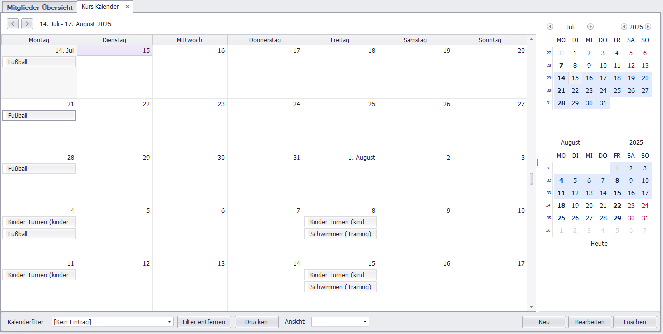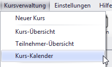 Menüleiste: Kursverwaltung > Kurs-Kalender