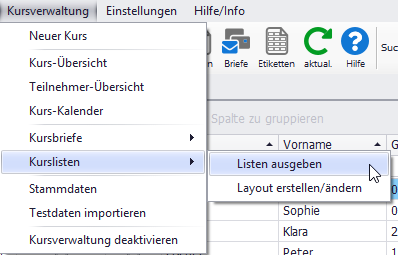 Mit List & Label können Sie auch individuelle Listen mit den Variablen aus der Kursverwaltung erstellen.