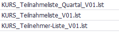 Die von SPG-Verein mitgelieferten Kurslisten sind mit dem Präfix KURS_ gekennzeichnet. Bei der Auswahl nicht passender Formulartypen kann es zu Fehlermeldungen kommen.