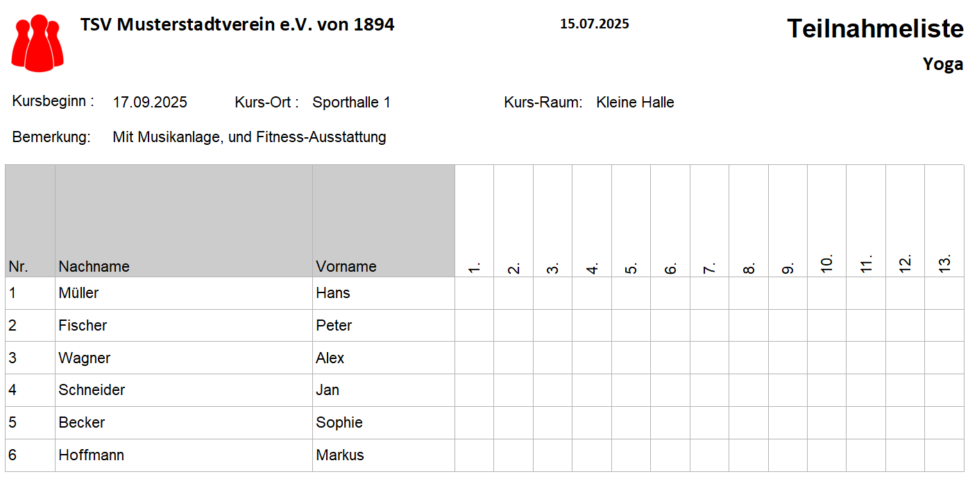 Nutzen Sie Kurslisten zur Erstellung von Dokumenten, um beispielsweise die Kursteilnahmen vor Ort zu dokumentieren.