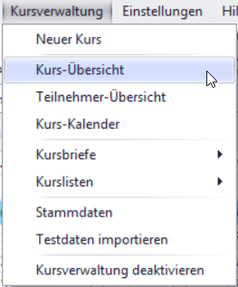 Innerhalb der Kursübersicht können Sie mittels Doppelklick direkt in die Kursdaten des jeweiligen Kurses navigieren.