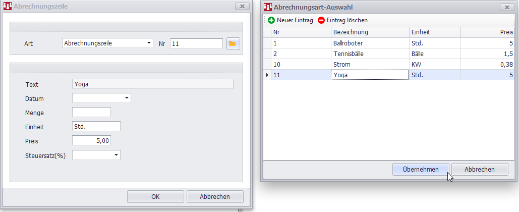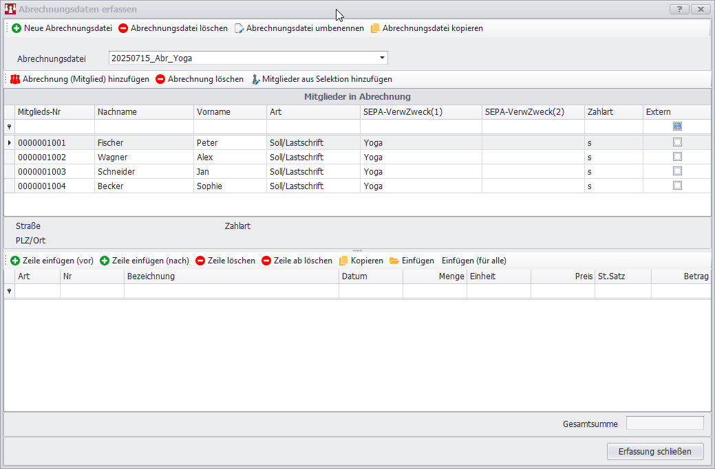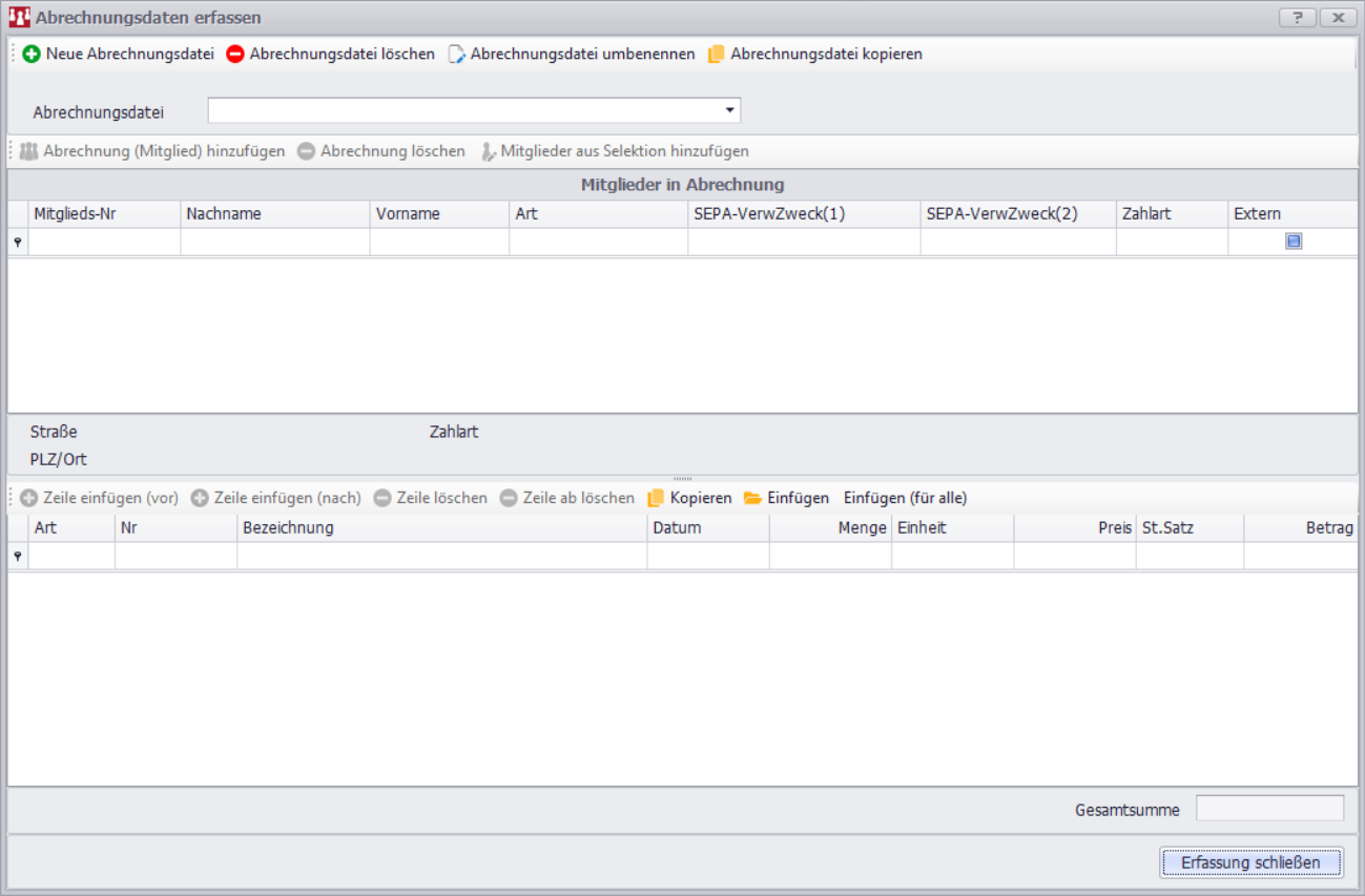 Die angelegte Abrechnungsdatei ist nun innerhalb des Fensters ausgewählt und aktiv: