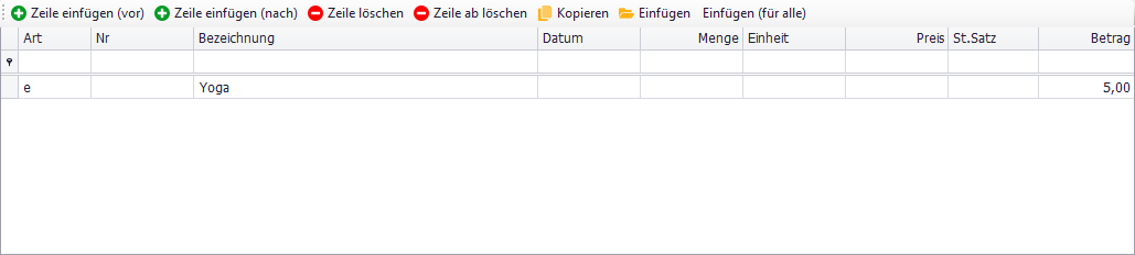 Der entsprechende Zeilentyp kann über folgende Funktionen generiert, gelöscht, kopiert oder eingefügt werden: