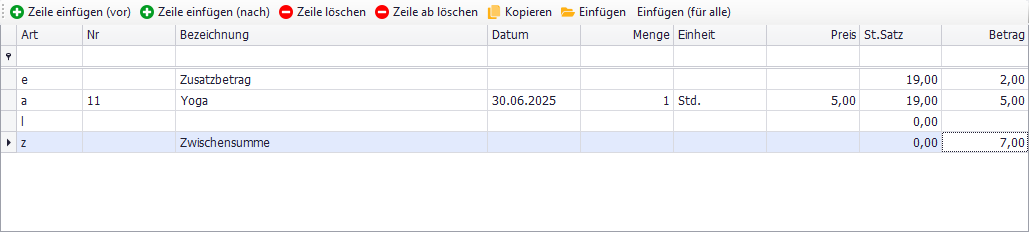 Innerhalb der Abrechnung wird zwischen nachstehenden Zeilentypen unterschieden: