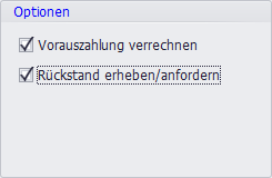 - Rückstand erheben/anfordern: Hiermit legen Sie fest, ob zusätzlich zu den aktuellen Beiträgen auch ein eventueller Rückstand (Kontosaldo) eingezogen werden soll.