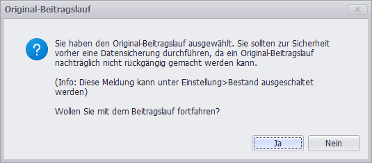 Der Originallauf einer Beitragserhebung bewirkt Änderungen am Datenbestand. Es sollte deshalb vor diesem