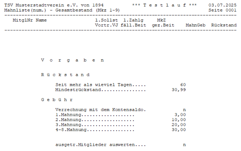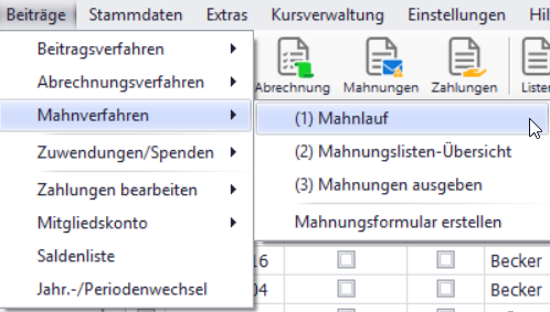 In SPG-Verein können Sie als Vereinsverwalter einen Mahnlauf starten, um Mitglieder oder Nicht-Mitglieder mit offenen Forderungen an ausstehende Zahlungen zu erinnern.