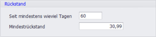 Weiterhin können Sie einen Betrag bei Mindestrückstand eintragen. Auch hier wird erst einen Mahnung generiert, wenn dieser überschritten ist.