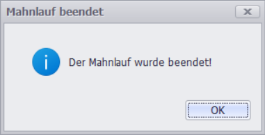 Wenn Sie Ihre Eingaben getätigt haben, bestätigen Sie mit OK. Im Anschluss erhalten Sie eine Mitteilung, dass der Mahnlauf beendet wurde: