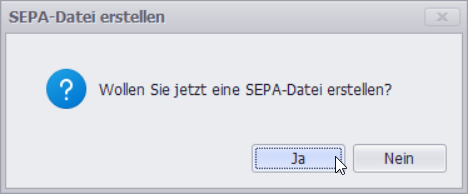 Klicken Sie im Anschluss auf Ja, falls Sie eine SEPA-Datei erzeugen möchten: