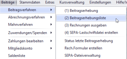 (2) Beitragserhebungsliste