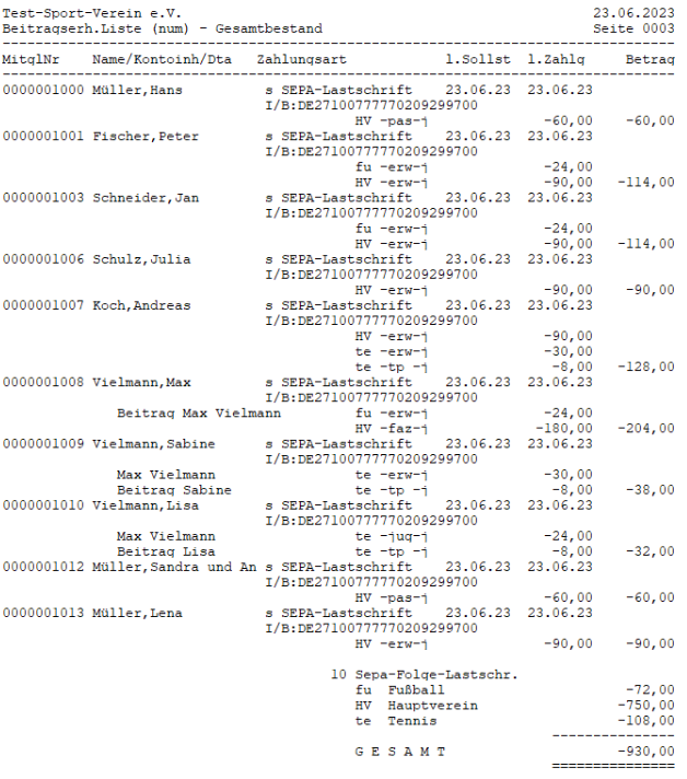 Bei Testläufen beachten Sie bitte den Hinweis "TESTLAUF" auf jeder Seite. Ein Testlauf hat keine Auswirkungen auf die Mitgliedskonten und ist lediglich für Kontrollzwecke gedacht.