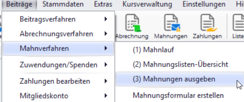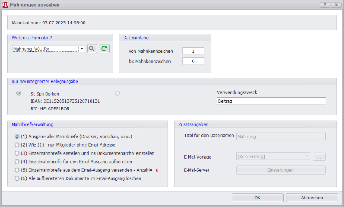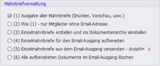 (2) Es werden nur Mahnungen für Mitglieder ohne hinterlegte E-Mail-Adresse ausgegeben.