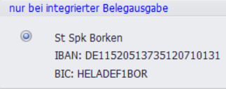 Dieser Bereich ist relevant, wenn Sie ein spezielles Mahnformular mit integriertem SEPA-Überweisungsbeleg nutzen. Hier wählen Sie die Bankverbindung und geben den gewünschten Verwendungszweck für die Überweisung an. | |