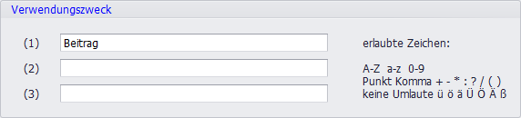 Es können drei Zeilen mit jeweils bis zu 35 Zeichen als Verwendungszweck erfasst werden. Diese Angaben erscheinen später auf dem Kontoauszug des Zahlungspflichtigen.
