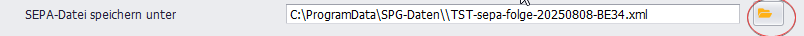 Wählen Sie das Verzeichnis und den Dateinamen für die zu erzeugende SEPA-Datei. Im Dateinamen wird automatisch das aktuelle Datum eingeblendet, sodass unterschiedliche Dateien eindeutig unterschieden werden können.
