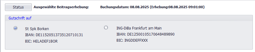 In den Vereins-Stammdaten können zwei verschiedene Bankverbindungen hinterlegt werden. Bei der Erstellung der SEPA-Datei wählen Sie aus, auf welches Konto die per Lastschrift eingezogenen Beträge gutgeschrieben werden sollen.