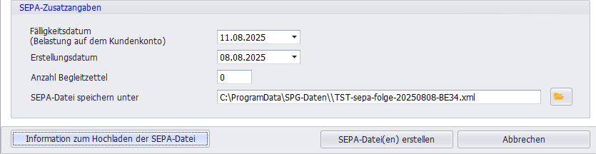 SEPA - Fälligkeitsdatum und Erstellungsdatum siehe im Kapitel: Programmdatum einstellen