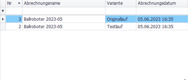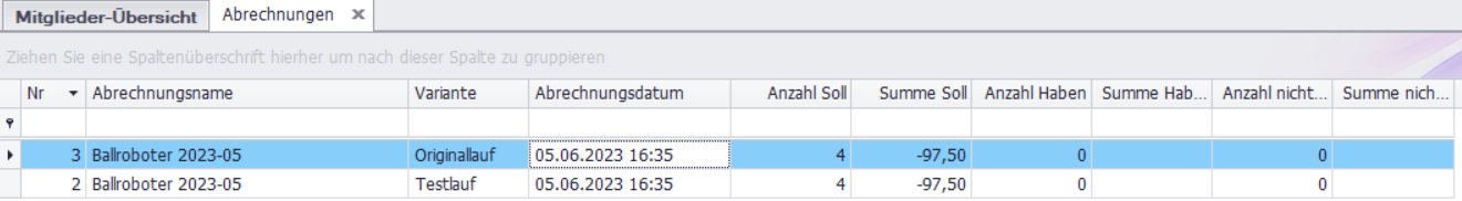 Im Bereich Abrechnungen finden Sie eine Übersicht, der in der Vergangenheit durchgeführten Abrechnungen.