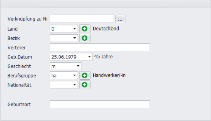 Berufsgruppe: 3-stellig, frei definierbar oder aus Stammdaten auswählbar. Ermöglicht interne Selektionen.