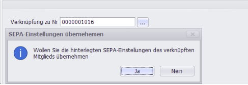 Wird bei einer Verknüpfung von Mitgliedern mit SEPA-Zahlung die Übernahme von Zahlungsdaten gewünscht, können die SEPA-Daten des Hauptmitglieds automatisch auf verknüpfte Mitglieder übertragen werden.