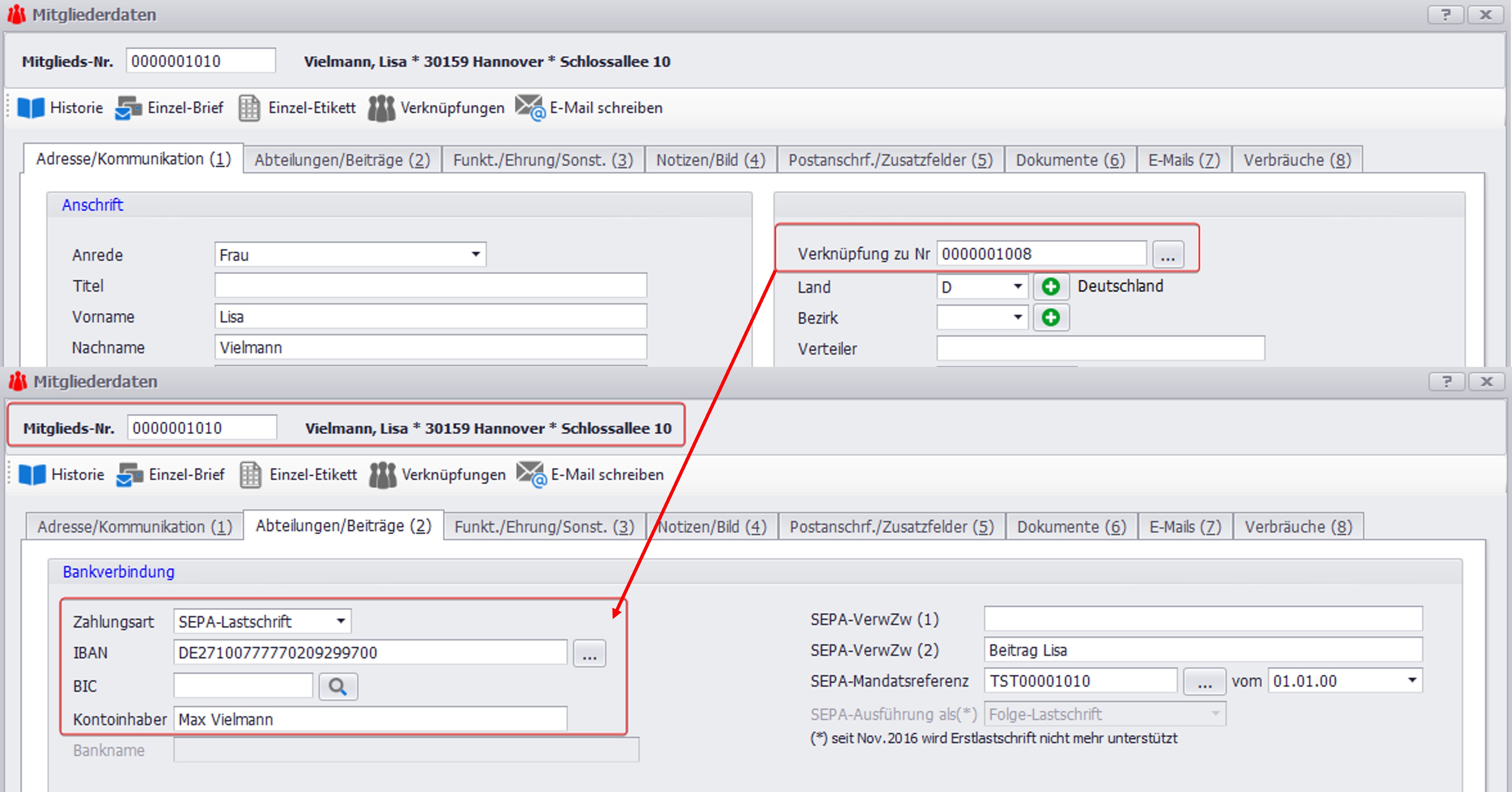 Verknüpfung zu Mitgliedsnummer