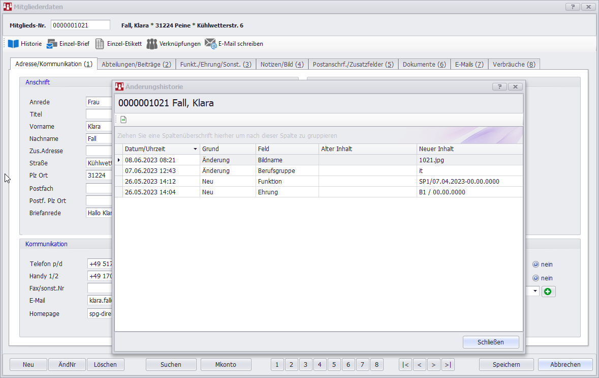 Änderungshistorie im Mitglied