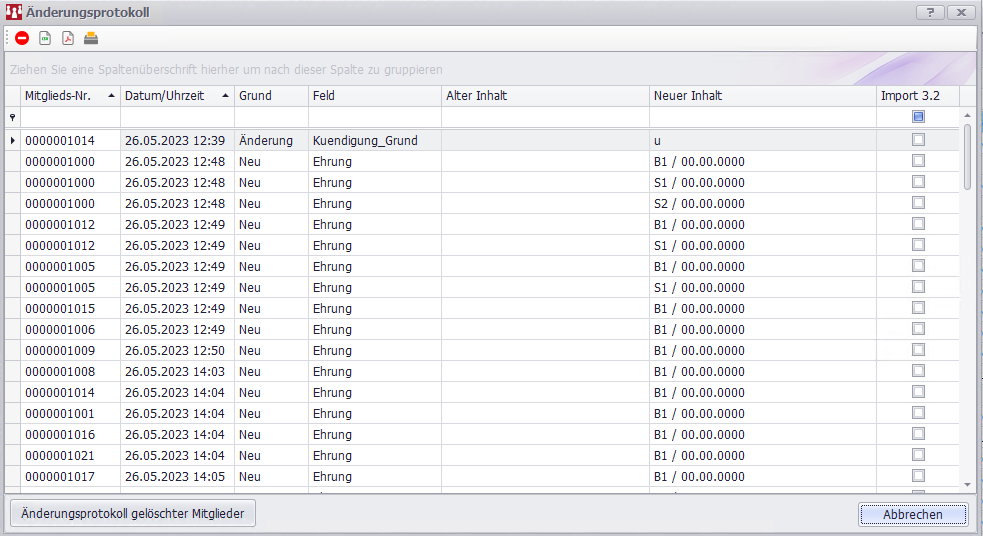 Über die Schaltfläche „Änderungsprotokoll gelöschter Mitglieder“ können Sie ein separates Protokoll aufrufen.
