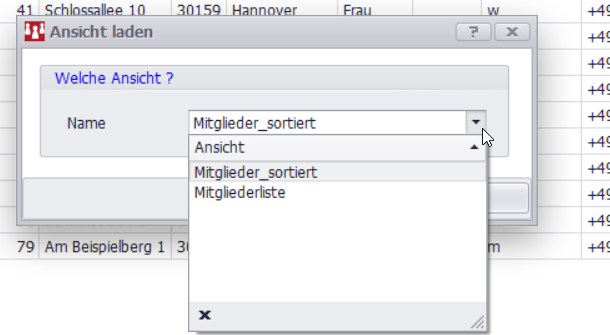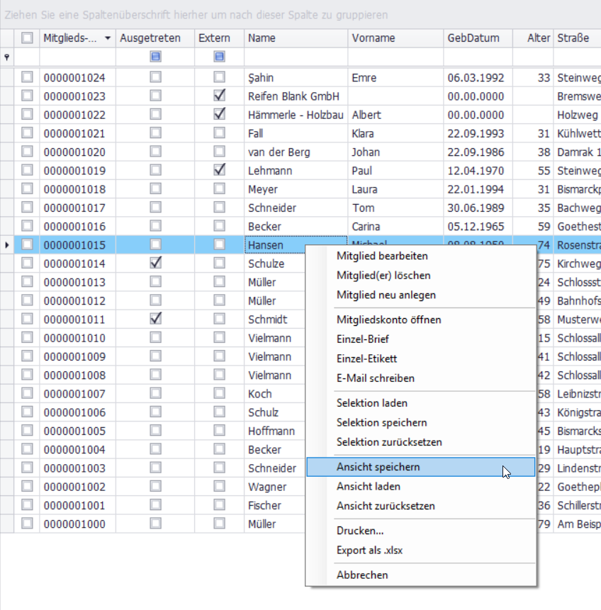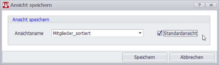 Tipp: Durch das Speichern individueller Ansichten können Sie für verschiedene Arbeitsabläufe (z. B. Beitragsläufe, Mitgliederpflege, Selektionen) jeweils die optimale Darstellung schnell wiederherstellen.