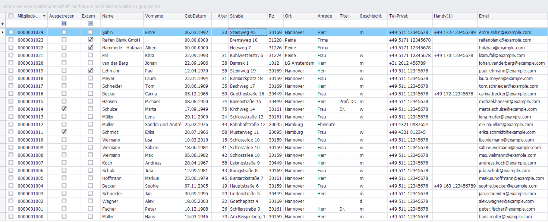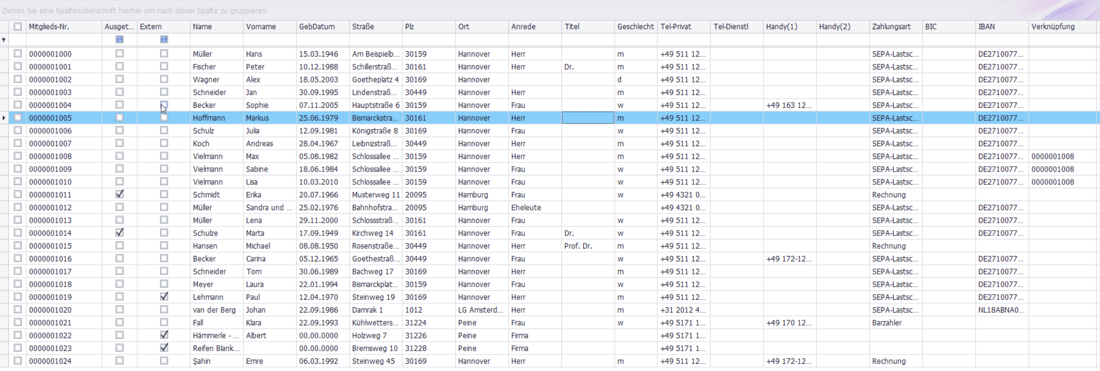 Stellen Sie die Mitgliedertabelle nach Ihren Wünschen ein, beispielsweise nach bestimmten Sortierungen.