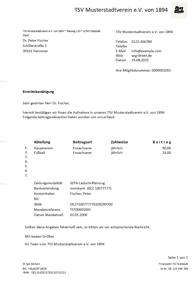 Wir sehen also, auch ohne Anpassungen an den Vorlagen, erhalten wir individualisierte Vereinsbriefe.