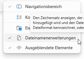 Um die Vorlagen später zu bearbeiten, sind zwei Einstellungen im Dateiexplorer wichtig. Wir wollen die Dateiendungen sehen und auch die versteckten Ordner anzeigen lassen. Hier die Vorgehensweise: