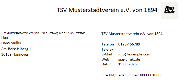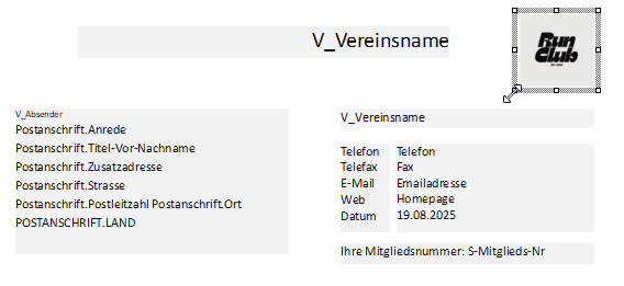 Wenn dies durch das eigene Vereinslogo getauscht wird, greift dies in allen Briefen und Listen.