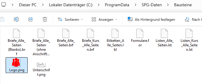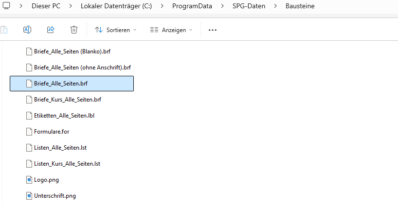 Im Datenpfad von SPG-Verein findet man einen Ordner \Bausteine