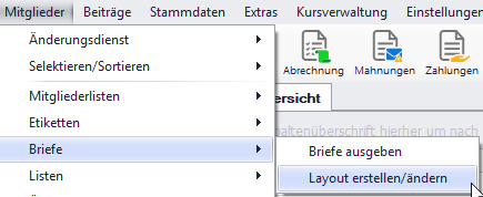 Gehen Sie auf Mitglieder > Briefe > Layout erstellen, ändern