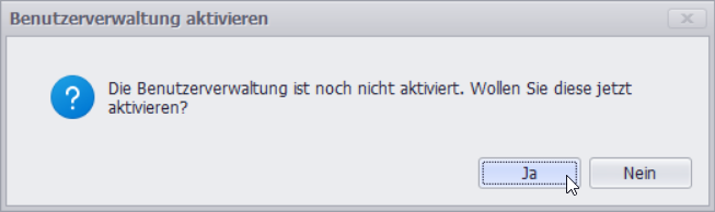 Falls Ihre Benutzerverwaltung noch nicht aktiviert ist, bestätigen Sie die Meldung mit Ja.