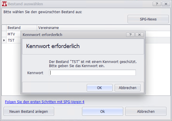 Falls für den Bestand ein Passwort hinterlegt ist, werden Sie im nächsten Schritt danach gefragt.