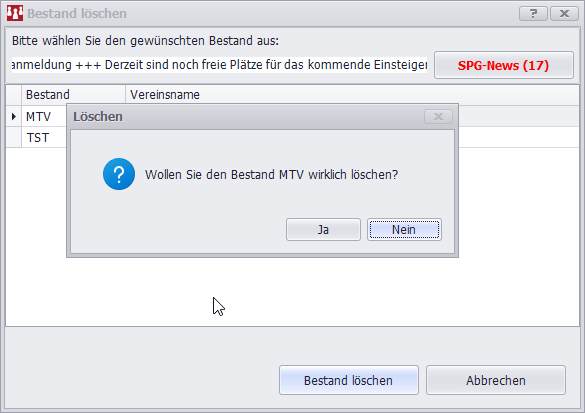 Wenn Sie versuchen, den aktuell geladenen Bestand zu löschen, erscheint ein entsprechender Hinweis auf dem Bildschirm.