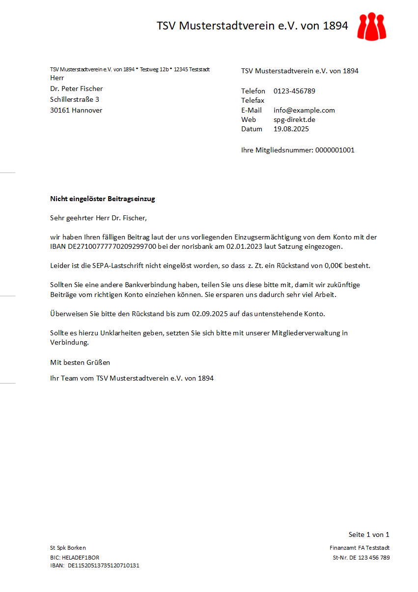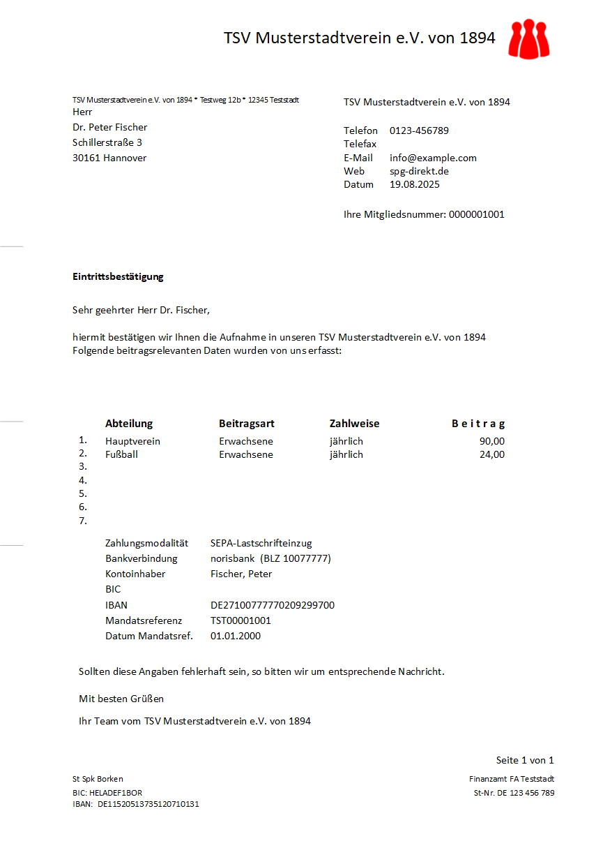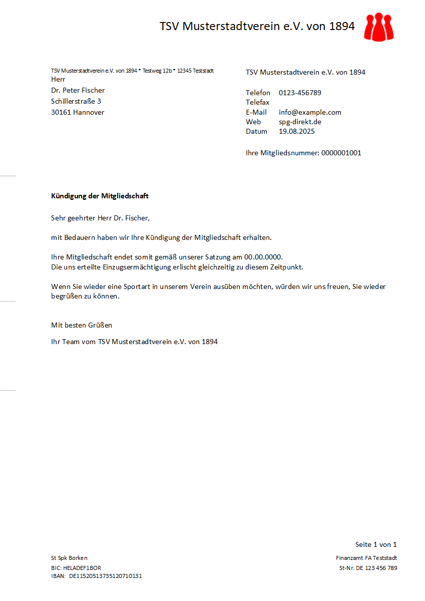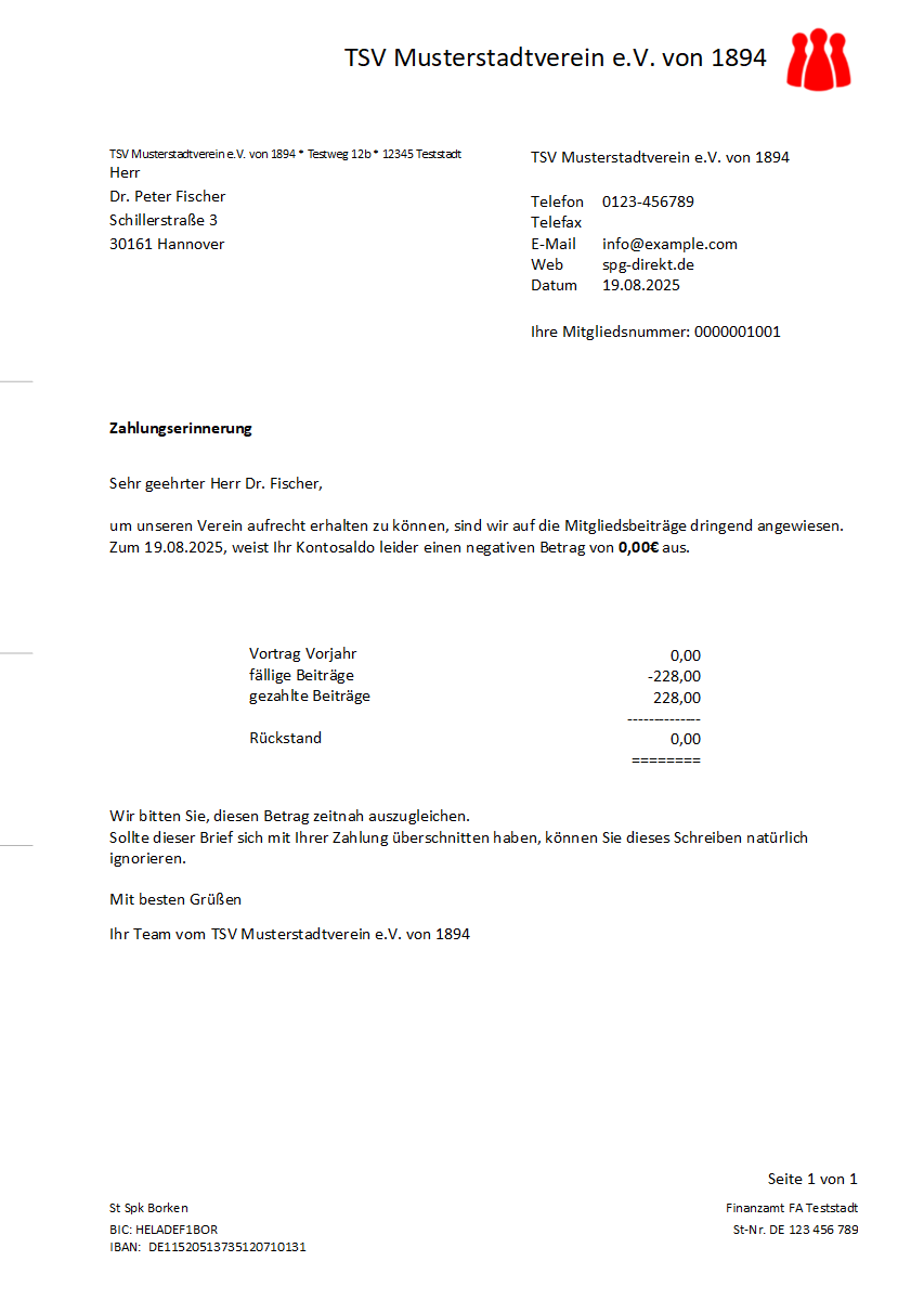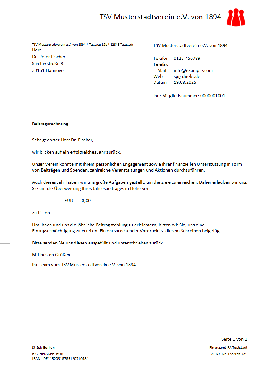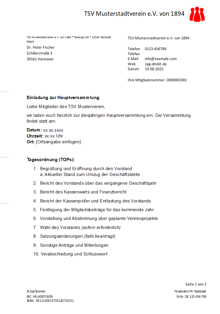 Jetzt kann die Einladung mit SPG-Verein erzeugt werden: